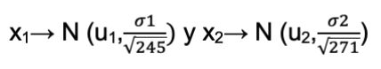 Esto es, que x1 y x2 corresponden a una distribución normal de media poblacional u1 y u2, con sus respectivas varianzas.