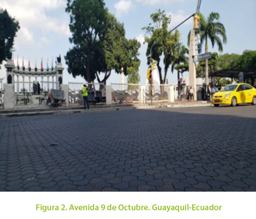 El proceso de permanente crecimiento del uso del paquete estructural vial, que incluye como capa de rodadura, al bloque prismático prefabricado de hormigón de cemento hidráulico (adoquín), señalada en artículos técnicos, (Bullen, 1992), (Jamshidi, y otros, 2019), no ha sido diferente para la realidad ecuatoriana. A partir de finales de la década de los setentas e inicios de los ochenta, el pavimento con adoquines ha cubierto en el área urbana, un rango amplio de necesidades, tales como; el peatonal, estacionamientos, calles residenciales, caminos secundarios y calles principales (INEN, NTE 1488. Adoquines. Requisitos, 1987). Ejemplo de este proceso son vías principales de Quito y Guayaquil construidas en parte, con este tipo de pavimento (Fig. .1-Fig.2), así como también, en pavimentos de alta exigencia como son los puertos marítimos (Fig.3).