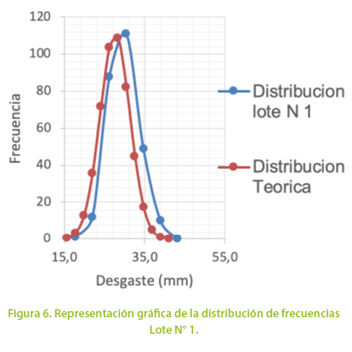 Sobre la base de los abundantes datos disponibles en el Laboratorio Universitario de la Pontificia Universidad Católica del Ecuador entre los años 2010 a 2015 correspondientes al control de una gran cantidad de fábricas en el ecuador, del análisis estadístico, se ha comprobado la distribución normal simétrica que poseen los valores de medida del desgaste superficial a través del método de ensayo de la banda ancha EN 1338.