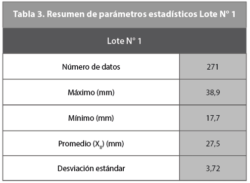 Los resultados de estos ensayos se presentan en las siguientes Tablas, agrupados según el año de ensayo. Los resultados para propósitos del presente estudio se han denominado como lote N° 1, Tabla N° 1, siendo característica del mismo, la pertenencia al grupo de fábricas que no tienen implantado un proceso de control de calidad, con equipo de fabricación nacional y que son la mayoría en el Ecuador.