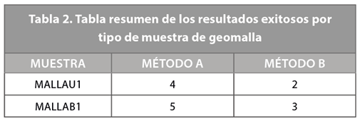 El número de resultados validos (según ASTM), por tipo de geomalla se detallan en la Tabla 2.