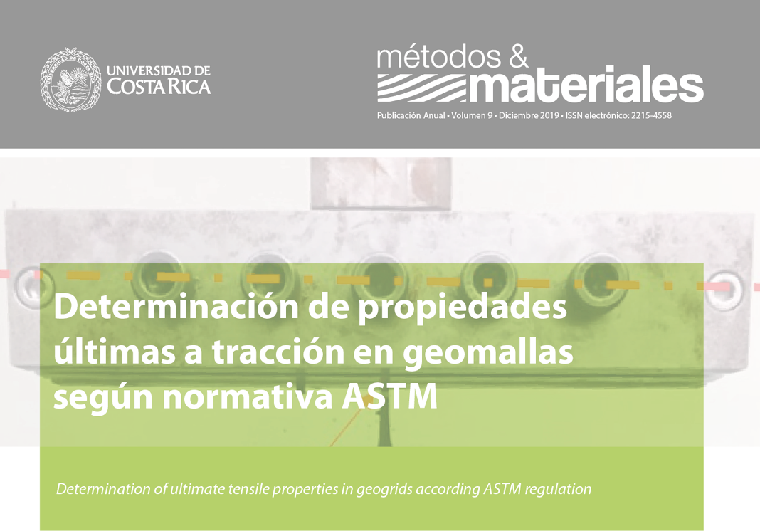Según la normativa geotécnica vigente de Costa Rica, específicamente el Código Geotécnico de Taludes y Laderas (CGTLCR), para el diseño y análisis de muros o taludes flexibles que utilicen geomallas en su estructura; se permite el método basado en factores de seguridad mínimos (en concordancia con la metodología de diseño de “esfuerzos de trabajo” o ASD por sus siglas en inglés), y señala que se deben cumplir los mismos para un desempeño adecuado. Por su parte, el Código de Cimentaciones de Costa Rica (CCCR) aconseja que preferiblemente la verificación de la estabilidad interna de los geosintéticos como componentes estructurales del muro sea verificada por medio de ensayos de control de calidad a nivel de Laboratorio. Sin embargo, en el país no se cuenta con una normativa INTE del Instituto de Normas Técnicas de Costa Rica que respalde la directriz, ni con algún laboratorio que realice dichas pruebas de conformidad con lo requerido. Se detectó entonces la necesidad de estudiar e implementar un método de ensayo que determine los parámetros mecánicos de resistencia a tensión en geomallas.
