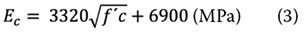 Para ello se procede a caracterizar los concretos con el fin de establecer la relación entre la resistencia a la compresión simple () y el módulo de elasticidad (Ec) a la edad de 28 días. Con los datos obtenidos de módulo de elasticidad y módulo de Poisson se calcula el módulo de cortante.
