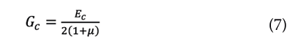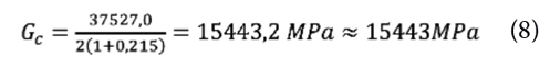 Se obtiene el resultado de módulo de cortante utilizando los datos experimentales de Ec y relación de Poisson obtenidos en el presente trabajo con la siguiente ecuación: