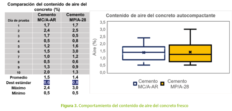Es importante señalar que todos los datos de contenido de aire mostrados en la figura 3 cumplen con el parámetro de control para el contenido máximo de aire (< 3 %).