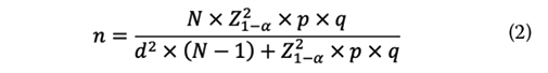 Salas-Bacalla (2000) indica que el muestreo de trabajo es un método de medición indirecto que consiste en realizar, durante cierto período de tiempo, un determinado número de observaciones instantáneas y aleatorias de un grupo de máquinas, procesos o trabajadores. En el muestreo de trabajo, para determinar el tamaño de la muestra en poblaciones finitas, se utiliza la ecuación (2):