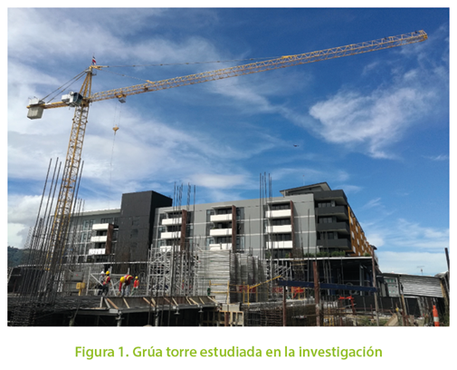 Rodríguez-Ramírez (2013) señala que la grúa torre es un equipo que funciona gracias a un eje vertical giratorio y a un brazo con varias poleas (pluma), el cual permite levantar cargas por medio de un gancho suspendido en un cable y llevarlas a otro lugar que se encuentre dentro de su radio de alcance a la altura requerida. En la Figura 1, se observa la grúa torre estudiada para la presente investigación: