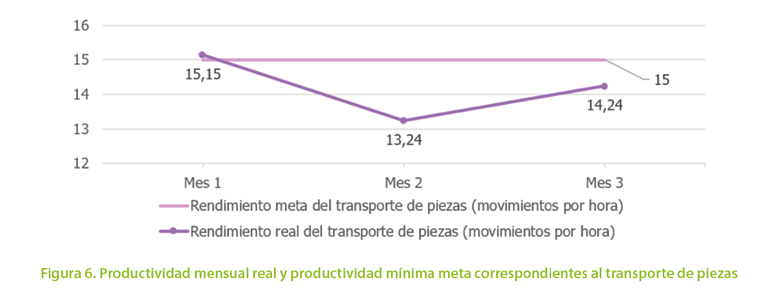 En la Figura 6, se muestra la productividad mensual real del transporte de piezas y su productividad meta mínima.