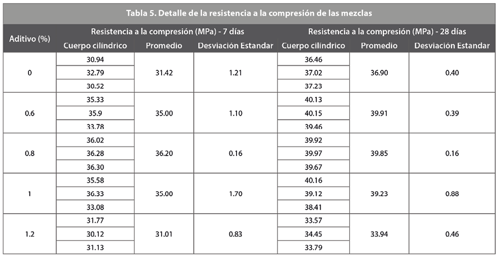 Los resultados de la resistencia a la compresión para 7 y 28 días se presentan en la Tabla 5 y Figura 7.