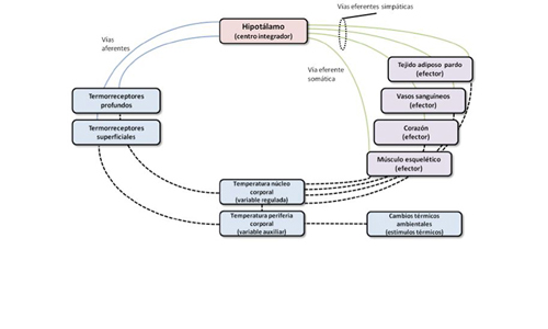 ...termorregulación refleja, metabolismo, balance energético y composición corporal, aunque la clara explicación de estas interacciones apenas inicia
