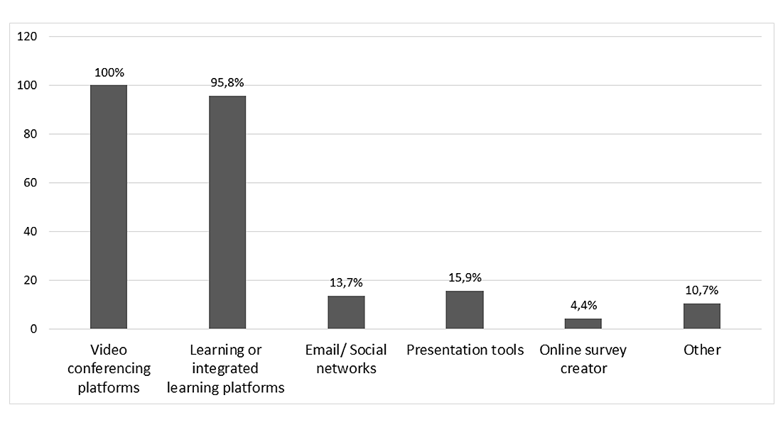Before the lockdown, teachers and students commonly used email, WhatsApp, Google Classroom, and Google Drive to share documents and communicate among teachers and students (Vargas and Gúzman, 2019). The data analysis shows that many more platforms widened the list to teach synchronously or asynchronously. Zoom's video conferencing platform came to satisfy the need for teaching remotely and synchronically among all platforms.